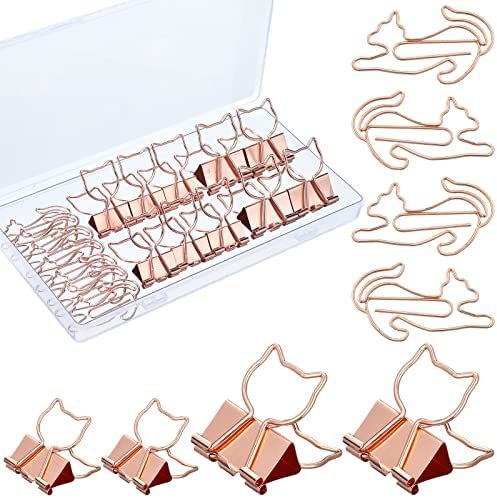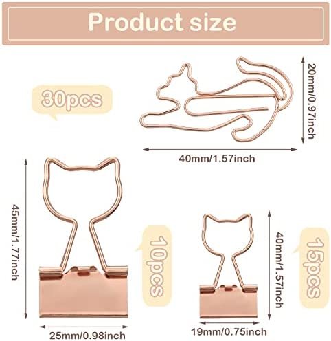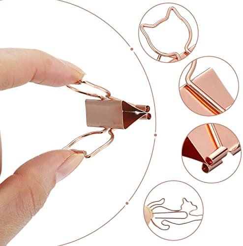 Rose Gold Cat Design: rose gold cat shaped paper clips and metal binder clips, adorable design with rose gold shine looking, attractive and interesting, adds much fun to you life