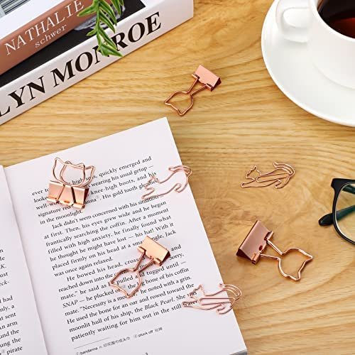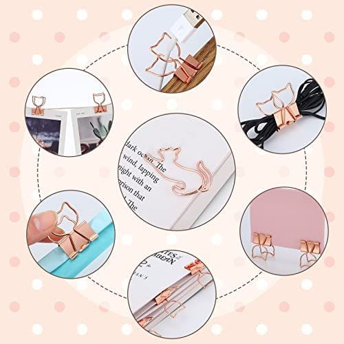 Suitable Size: the 3/4 inch width cat binder clips measure 19 x 40 mm/ 0.75 x 1.57 inch, the 1 inch rose gold width binder clips are 25 x 45 mm/ 0.98 x 1.77 inch, the size of the cat paper clips is 40 x 20 mm/ 1.57 x 0.79 inch, portable and practical