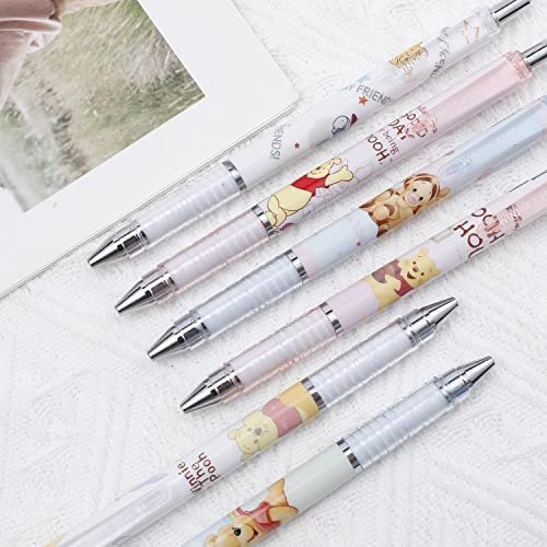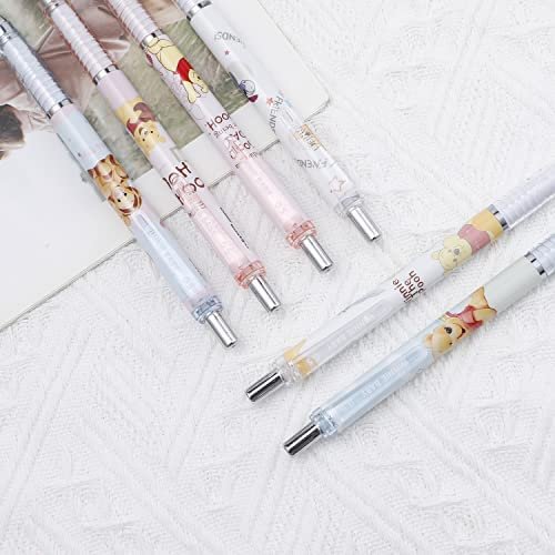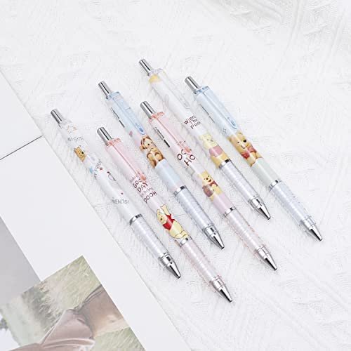 【Pens Structure】- 6PCS The cute Winnie pen, clear cartoon pattern, a fine point of 0.5 mm. Button structure design, gently press to write. convenient for your writing and drawing.