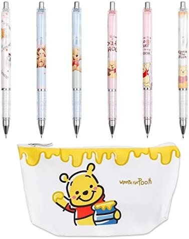 6PCS Cratoon Winnie the Pooh Gel Pen with Pencil Case Pooh and Piglet Ballpoint Pens, 0.5mm Cute Winnie Bear Black Ink Pen Office School Supplies Gifts for Boys Girls(PEN Winnie)