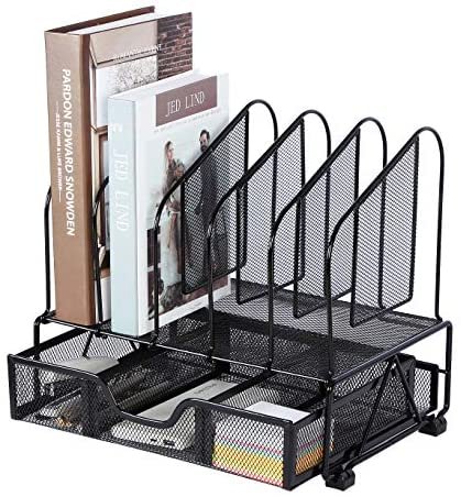 Separate your files papers mails bills and books on top 5 upright sections and the bottom flat tray with desk accessories drawer organizer, and use it separately