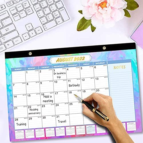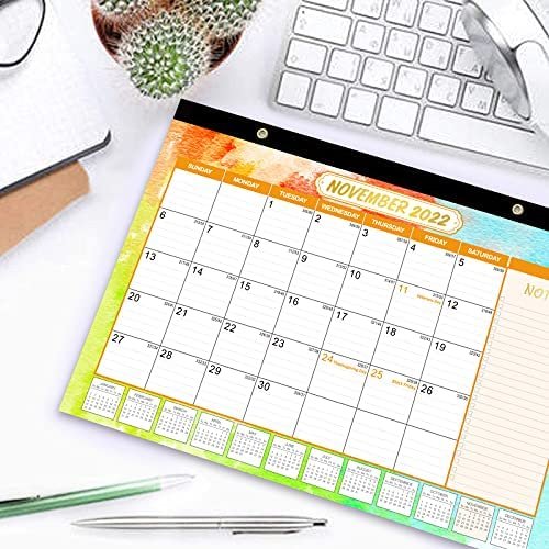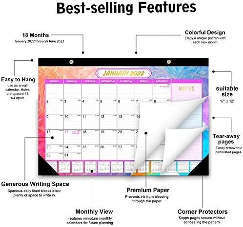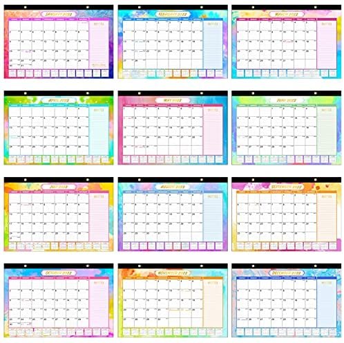 ?Valuable Pack: Tie dye desk calendar runs from January 2022 through June 2023 .12 unique themes. Page size 17”×11.5”
