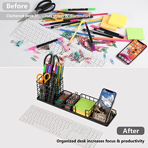 Research have shown that people with tidy desks have hundred times percent longer attention spans than those with messy workplaces.A cluttered desk is not only bad for your mood, it’s also bad for concentration and productivity. Everyone wants to be productive and leave work on time without spending extra time behind to clean up your desk. How to solve this headache?Our new research out of this mesh desk organizer can fully meet your needs!