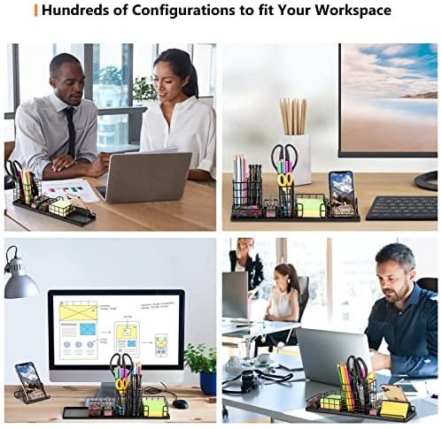 Combination Suit- 1 support base & 6 different compartments Exquisite Design- DIY mesh organizer with high-quality material Ideal Color- Pure black surface makes your desk more professional Falling Prevention- 0.2inch bump around the base without falling off