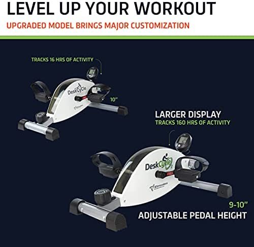 Drop It Low: DeskCycle 2 mini exercise bike is adjustable. Drop it down to 9″ for the lowest max pedal height of any desk bike pedal exerciser on the market! Works with desks as low as 27″ for people 5’10” & under