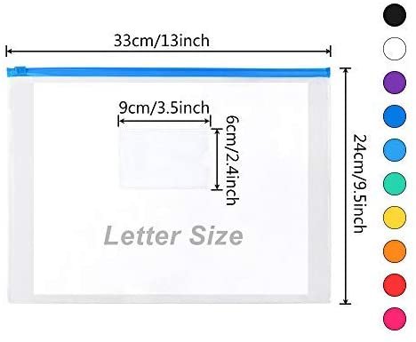 MORE USES: Our plastic zip envelopes can not only be used to store paper documents and with its excellent waterproof properties, but also be used to store electronic products, small pieces of clothing, stationery, travel supplies, cosmetics, etc. You can use it in the office, school, travel and other occasions. Organizing work has never been easier.