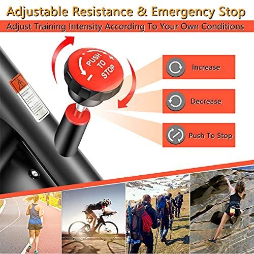 Turning right to increase resistance, left to decrease resistance, easy to adjust your cardio workout level. Press down to stop the flywheel immediately, safe to use.