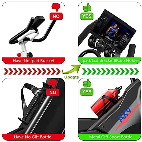 ✅【 Thickened Build – The AXV Type Frame】After continuous improvement and upgrading, AXV designed this exercise Bike bike. The thickened steel frame enhances the stability and sturdy stand in your ride. Thickened frame tube,extra wide seat cushion,updated 330lbs max user weight give this indoor cycling bike a rock solid build. Which has a stylish appearance makes this exercise bike more aesthetically pleasing.