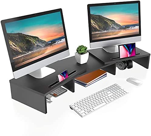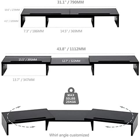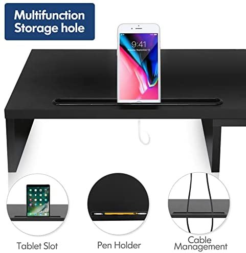【Longer Size with More Space】At longest 42.7inch wide, this laptop riser is big enough to support two monitors. Depending on your setup, you may even have room to place a speaker or another device in the middle. Creates enough space underneath for smaller desk essentials, or to tuck your keyboard and mouse away.