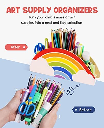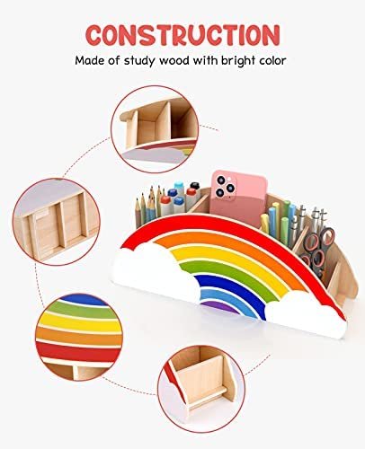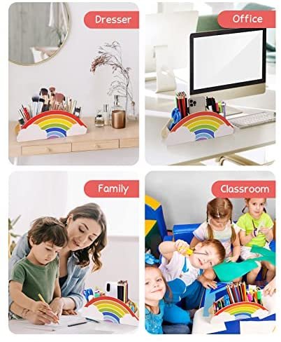 Cute Design and Functional: Add some color to your art crafts space with an irresistible rainbow caddy! Perfect for storing pencils, crayons, sticky notes, scissors, dry erase markers and so much more. The caddy have 6 different size compartments to fit your desktop accessories