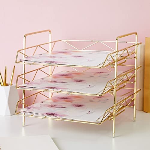 Stackable Design: Create a custom paper divider organizer that works best for you, the gold paper tray is 3 tier and can conveniently stack on top of one another to free up space