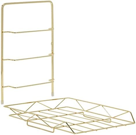 Add this stackable gold file organizer to your home office supplies to easily organize your loose papers, file folders, reports, and important documents. Each gold paper tray is made from a high-quality iron that is built to last and does not require any screws or tools for installation or assembly while stacking. The stackable file sorter measures 13 x 11 x 2 inches to ensure your work space stays clean, organized, and efficient.
