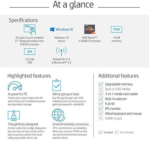With an AMD Ryzen processor and up to 16 GB of RAM, seamlessly go from sending work emails to uploading vacation photos. This All-in-One PC displays more with a three-sided micro-edge display and has an adjustable tilt stand, allowing you to work from multiple perspectives. This PC includes a FHD IR camera with a slide switch for privacy, plus built-in speakers and easy Wi-Fi connectivity. Now, you can stay in touch with family and friends while maintaining peace of mind.
