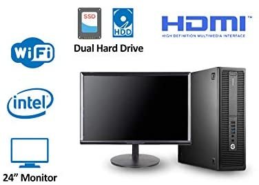 HP EliteDesk 800 G2 SFF Desktop Computer 24 Inch FHD Monitor Dual Hard Drive PC (Intel i5-6500 Up to 3.6GHz, 8GB RAM, 128GB SSD + 1TB HDD, WiFi, HDMI, Windows 10 Professional)
