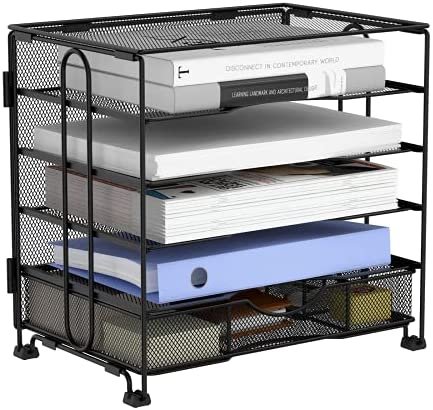 Screws Free Design ,Super easy to assemble with our detailed instructionsMade with metal mesh,Durable and resistant5 compartments +1 extra Drawer sorter design for space optimizationCan be used for paper, books, bills, mail, literature, files, and schoolwork