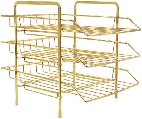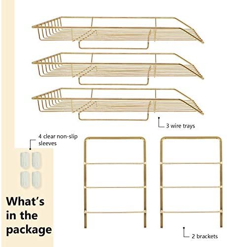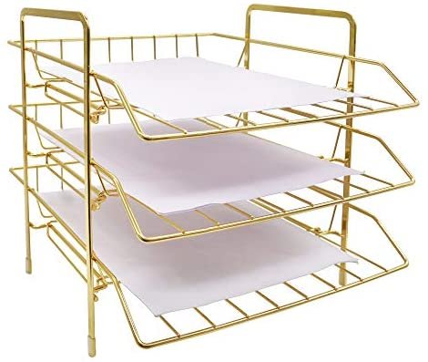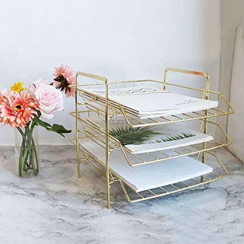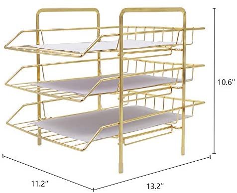 ✔️【SIZE】13” x 10.8” x 10.6”. This gold paper tray utilize vertically-stored space, maximize use your desktop workspace. Keep your office and learning environment tidy and convenient.