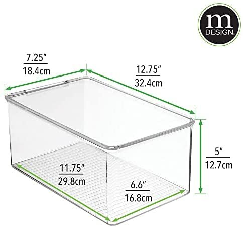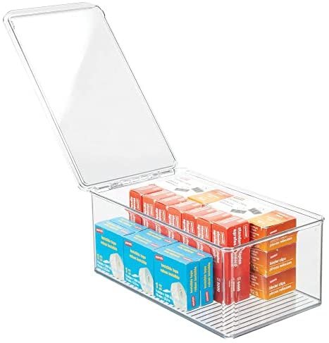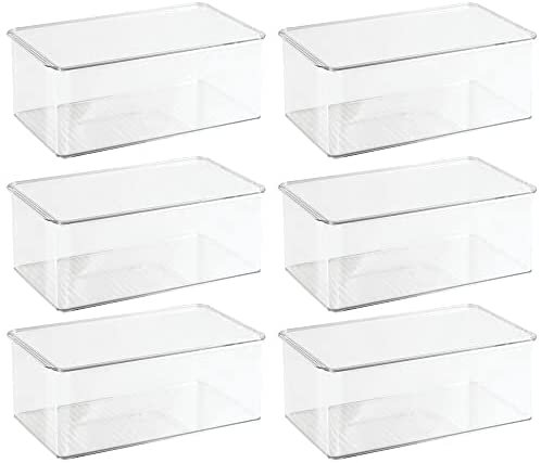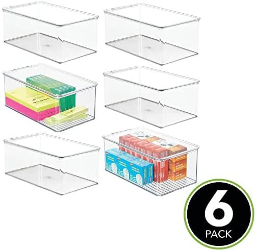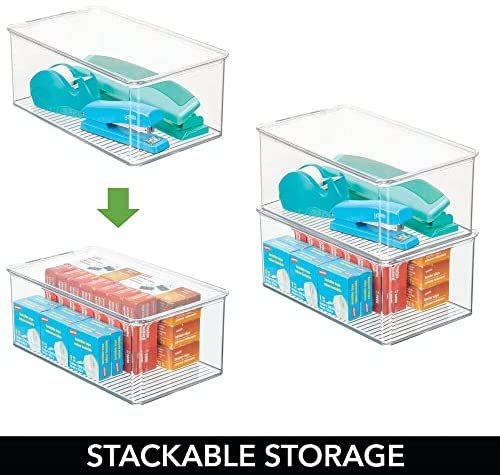 STACK & STORE: Hinged lid keeps contents contained in each rectangular organizer; Protect your items from dust and debris; The clear construction makes it easy to see what’s inside without opening each box; Create space-saving, vertical storage in file cabinets, desk drawers, shelves and closets; Maximize your storage space in multiple rooms throughout your home; mDESIGN TIP – we love these bins for storing small toys such as building bricks, doll clothes and accessories, action figures and more