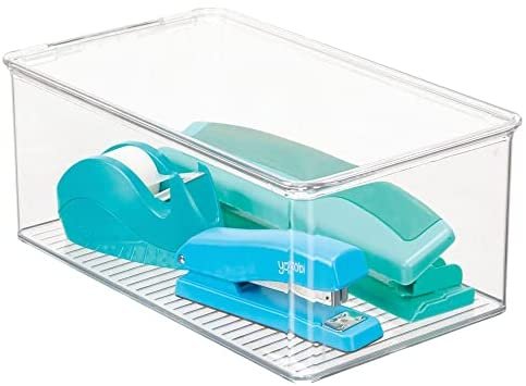 Be the first to review “mDesign Plastic Stackable Box for Home, Office Supplies Storage Organizer with Attached Hinged Lid – Holder Container Bin for Note Pads, Gel Pens, Staples, Dry Erase Markers, Tape – 6 Pack – Clear”