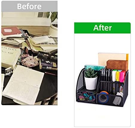 Space Saving: The desk organizer is easy to keep pens, rules, scissors, books, files, paper clips, etc all in one place; also good for organizing makeups and small household items.