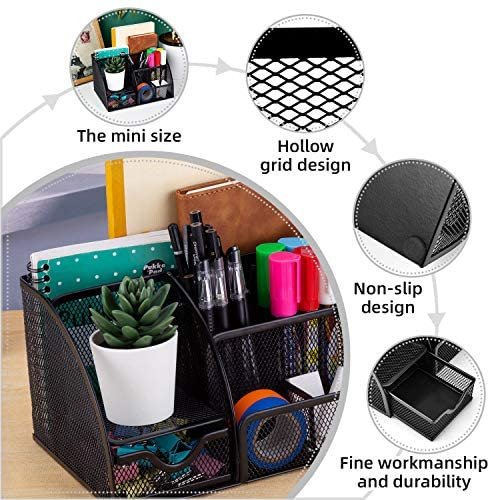 Durable Sturdy Stylish Material: The desk organizer is made of quality mesh metal – durable, compact and smart-looking and will keep the stuff you need at hand while staying out of your way.
