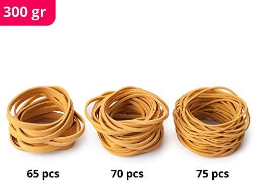 The Package Includes 300 gr Rubber Band In Assorted SizesMix Of Sizes Includes #64 (3-1/2 x 1/4 Inches), #33 (3-1/2 x 1/8 Inches), And #19 (3-1/2 x 1/16 Inches)Offer Tensile Strength And Re-Usable Convenience