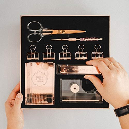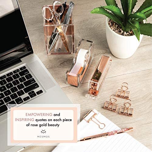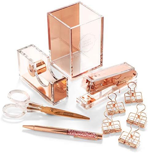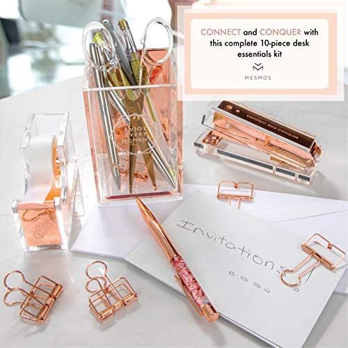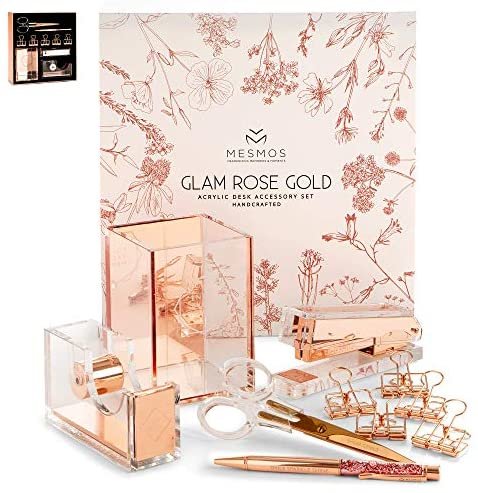 Is rose gold your favorite color? The Mesmos 10-piece luxury desk organizer set contains all the office essentials for women who loves the modern rose gold with a tinch of lucite!
