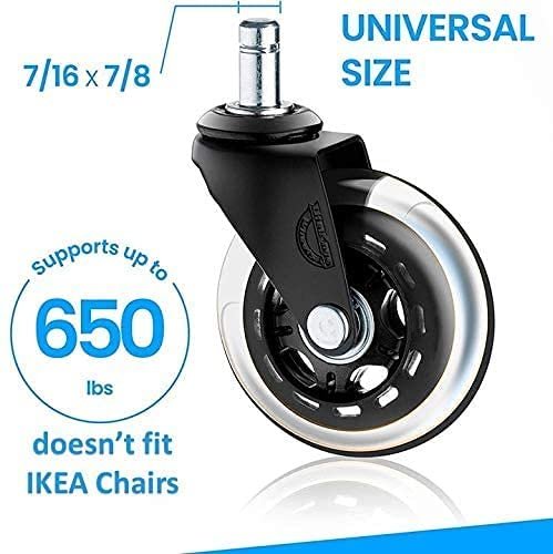 THE LAST OFFICE CHAIR WHEELS YOU’LL NEED – Not all caster wheels are created equal. Our heavy-duty chair wheels are made from industrial-grade steel, precision ball bearings, and durable polyurethane chair casters. Its not compatible with IKEA chairs and not either with some off brand chairs, our stem size is 7/16″ x 7/8″