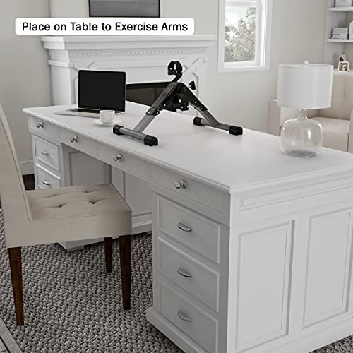 UNDER DESK BIKE – Conveniently compact, the mini pedal exerciser can fit under a desk or table so you can squeeze in a calorie burn while you work at home. The workout equipment also folds for easy storage.