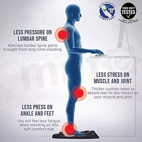 ✔ BURN CALORIES & INCREASE PRODUCTIVITY – Have you heard that recent studies say that sitting is the NEW smoking? Our anti-fatigue standing mat makes sure you’re moving while working, burning more calories compared to sitting all day, and you can stand for longer period of time for better work productivity. Ours come with a free premium massage ball ($15 value) that you can roll under your tired feet to iron out knots, relieve tightness, & and improve circulation.