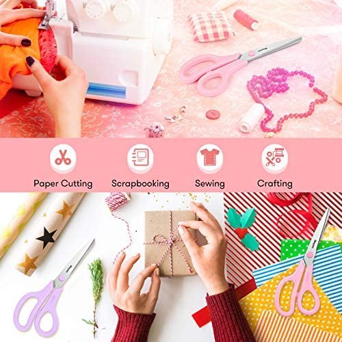 Definitely Household Scissors — Great for cutting burlap, paper, card stock, cardboard, wrapping paper, light line, fabric, tape, photos, coupons, and opening boxes & packaging. Surprised for sewing, tailoring, quilting, dressmaking, cutting patterns, cutting quilting, Vinyl, Leather, and making face masks. Exceptional scissors for multiple uses in various rooms, in the Handcraft Workshop, bathroom, sewing room, laundry room, craft room, at the office, great for most regular household tasks.