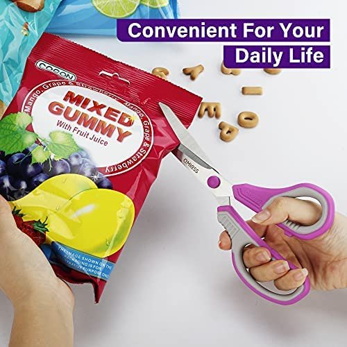3 BRIGHTLY COLORED SCISSORS: We chose purple/green/yellow 3 vibrant handle colors, different colors can be used in different places. When you need it, you can quickly find it.