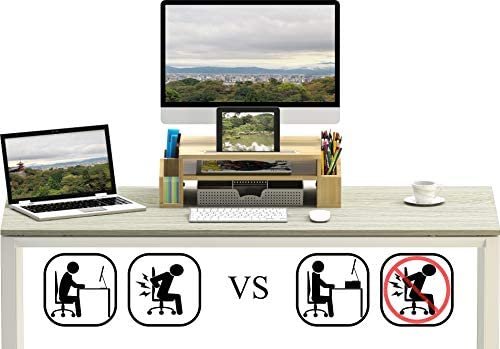 The monitor stand can help elevate your monitor to a comfortable height for a better viewing angle and position. This elevation helps you to achieve the perfect eye-level viewing position in order to get rid of neck / back pain due to incorrect viewing angles.