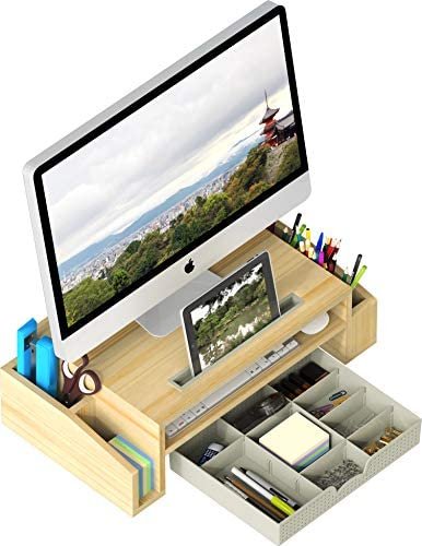 Monitor Riser / Stand with a sliding drawer for printer, computer, laptop, notebook.