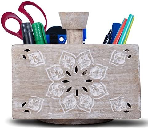 ORGANIZE IN STYLE – This desk organizer is carefully handcrafted by our top Artisans. Our rotating pen holder for desk boasts an exquisite design and superior functionality. This 4-section caddy organizer looks elegant with its whitewash finish. You can also use this rotating organizer as a home decor piece.