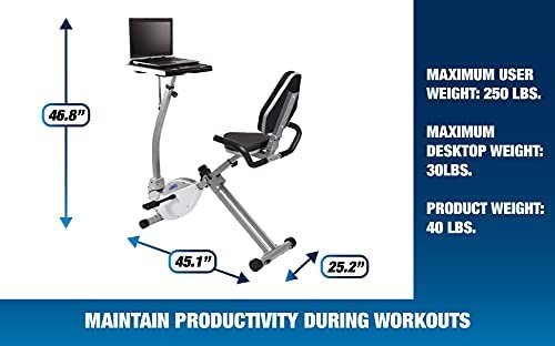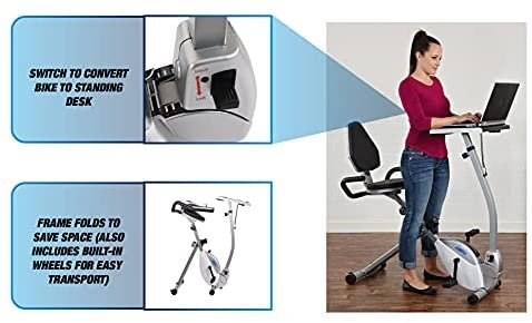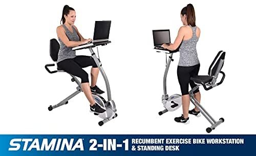 Stamina 2-in-1 Recumbent Exercise Bike Workstation & Standing Desk, Grey – Smart Workout App, No Subscription Required