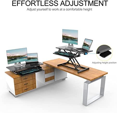 【Ergonomic & Comfort】 Adjustable height desk offers different comfort positions, just a second’s time, you can adjust your workstation from standing to sitting or from sitting to standing, allowing you to find that needed healthy balance between sitting and standing up throughout the day.