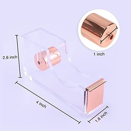 Easy to Use: Easy one-handed use design, easy to reload tape and staples. Clear acrylic rose gold tape dispenser fits standard 1 inch rolls of tape. The rose gold stapler remover can remove standard & mini-size staples.