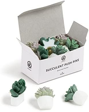 Need to boost your creativity and organization level? U Brands has the tools to get you there. Ideal for use at home, in the classroom or in the office, our 9-count set of Succulent Push Pins allows you to keep your work environment, home office or classroom sorted. Featuring molded surfaces featuring thick green leaves and white pots, each gold-tone pin stick out of the back of each plant. They provide a versatility that makes them an ultimate organizing accessory. Keep keepsakes, project notes, photographs and. more together for easy viewing on your board and more • U Brands is a dynamic, new company focused on a complete and diverse line of stationery, office, and home goods. We are developing some of the most unique and inspiring stationery and home office products. Our pledge is to deliver innovative and creative designs with great quality and value.