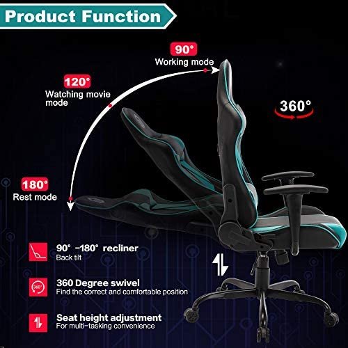 1.【Classic design】Ergonomic gaming chair,adjustable racing chair. Perfect for games, office and entertainment, enjoy a comfortable playing or working experience.