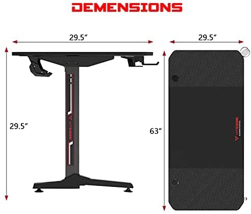 ★【OVERSIZED DESKTOP WITH MOUSE PAD 】–63“ W*29.5” D carbon fiber desktop, the large PVC laminated surface and mouse pad provides massive space for your gaming monitors, PC, gaming keyboards and other gaming gear.