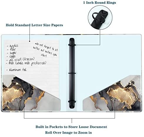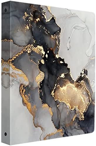 3 Ring Binder 1 Inch: Product expanded size, 21×12inch/53.5×31cm, product folded size, 9.8×12inch/25×31cm; Letter sized binder, with interior pockets, It can hold 175 letter-size pages. Available In 4 Colors: Pink Marble, White Marble, Blue Marble, and Black+Gold Marble