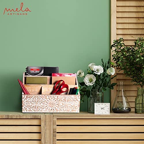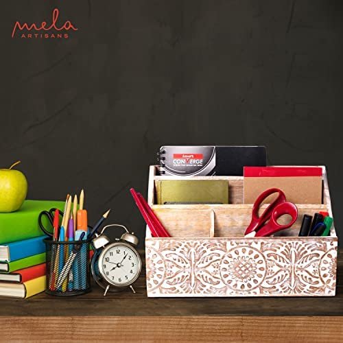 HAND CARVED WOOD – Our desk organizers and storage letter sorter is hand-crafted from natural wood & hand-carved by Indian artisans. The paper organizer for letters has a whitewashed finish, courtesy of great artisans who have spent decades mastering this art.