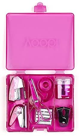 What’s Included?: Our school and home office supplies kit for desk include a pencil sharpener, scissors, tiny stapler, staples, staple remover, mini tape dispenser, tape refill, hole puncher, and carrying case. Whatever your office supply needs are, our vibrant pink supply kit is sure to have what you desire and will add some fun to the tasks at hand.